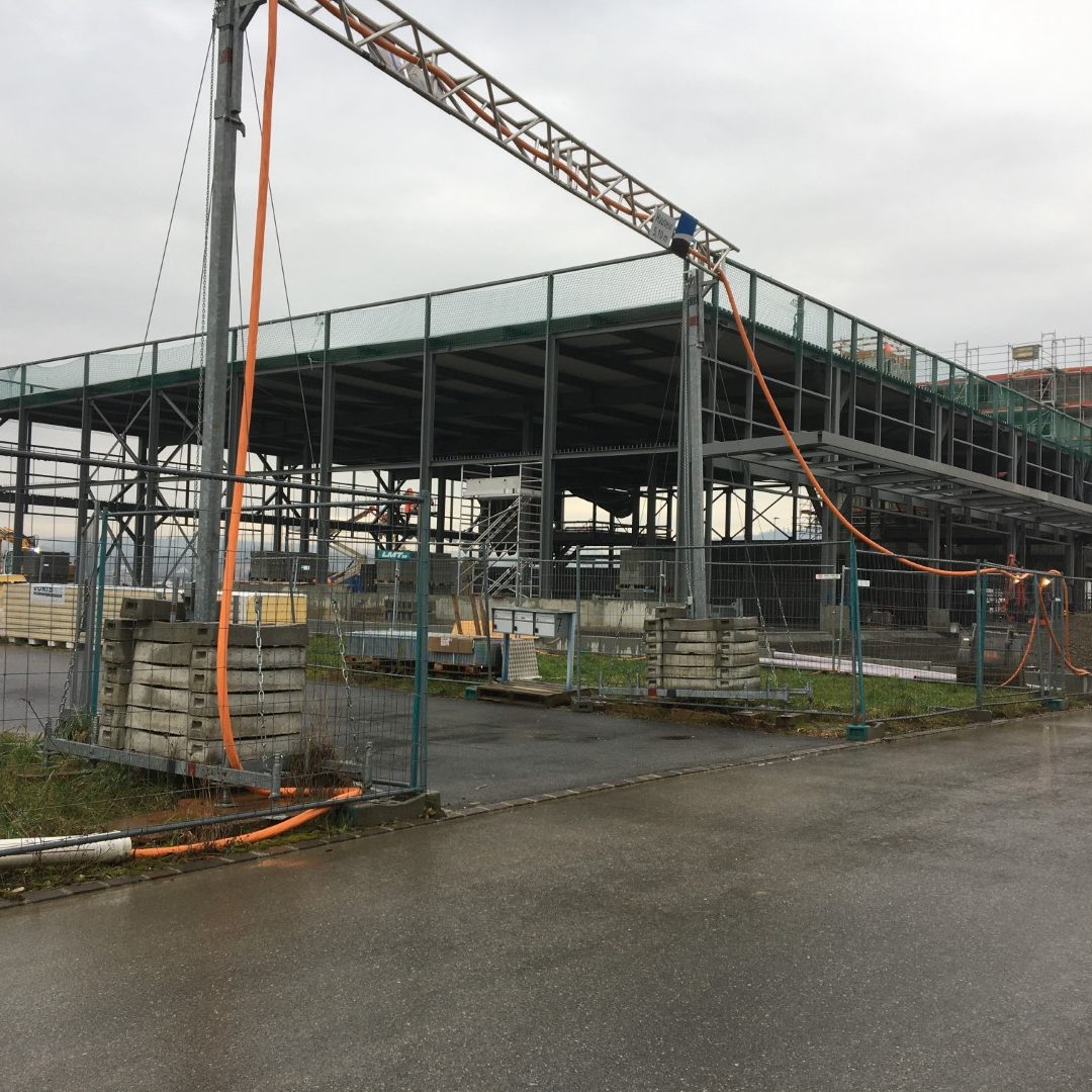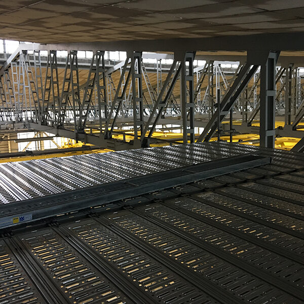 Concept et vérification statique d’une plateforme suspendue à la toiture de la halle, ainsi qu’établissement d’un mode opératoire de montage. Surface env. 4000m2, hauteur H=13.00m.