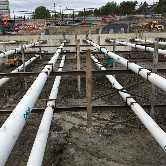 Concept et dimensionnement de l’étayage de fouille, établissement des plans et suivi des travaux de montage.