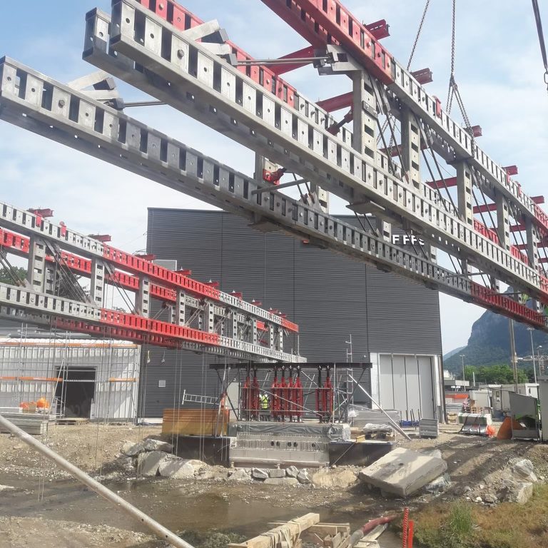 Pont de réception H=11.50m pour acheminement de machines jusqu’à un poids de 3 tonnes : concept, dimensionnement et plans d’exécution.