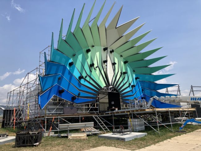 Vérification de la structure multidirectionnelle de type Layher composant la scène ainsi que la corolle à l’arrière. Calcul des ancrages et des lests nécessaires afin de garantir la stabilité de la structure.
