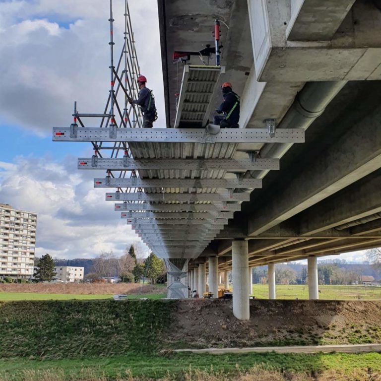 Concept et vérification de plateformes suspendues pour la réfection du pont. Longueur 230m, surface 2940m2.