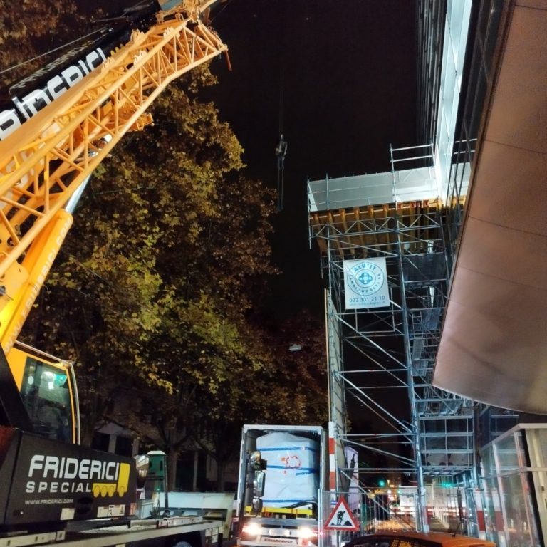 Pont de réception H=11.50m pour acheminement de machines jusqu’à un poids de 3 tonnes : concept, dimensionnement et plans d’exécution.
